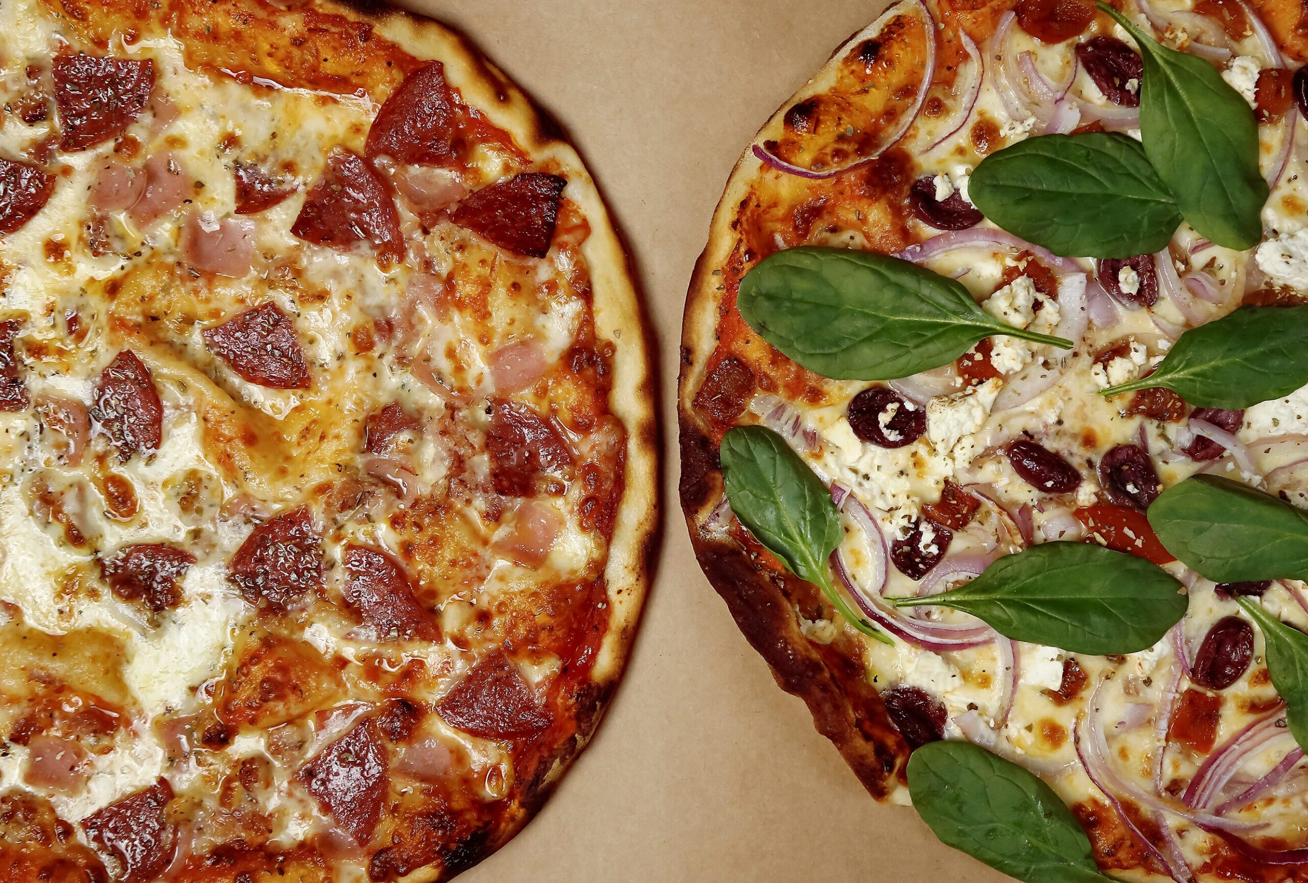 Choose any two pizzas from the Eat Out The Box menu for R269. Upgrade options include gluten-friendly or low-carb cauliflower base (+R25) or vegan/no-mozzarella substitutions, and a wide selection of additional toppings can be added to customise each pizza.